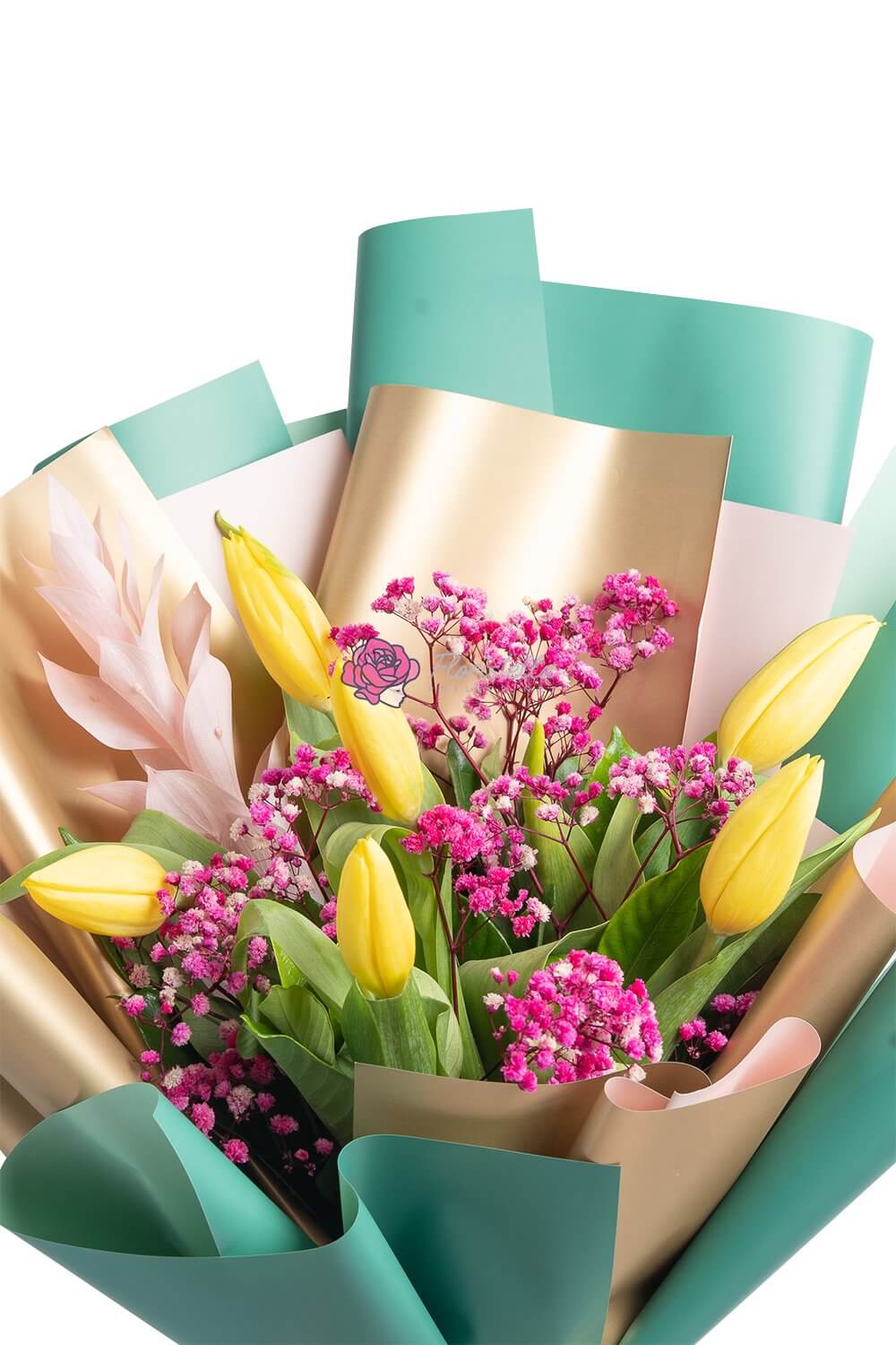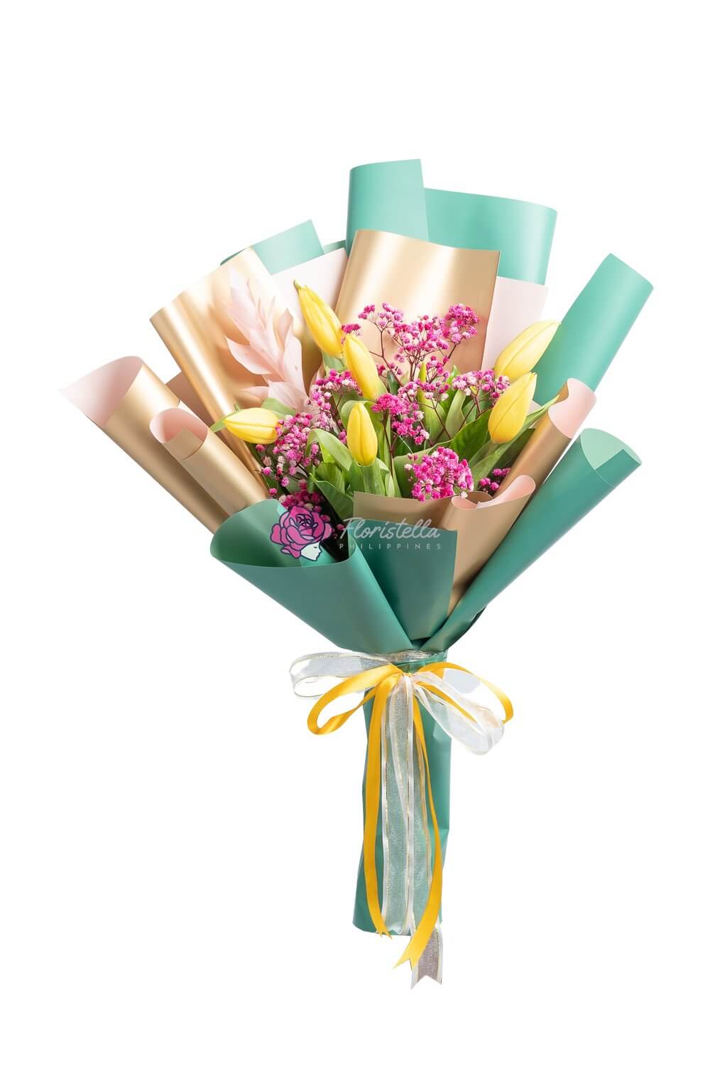 At Floristella, we ensure that your Yellow Tulips & Fuchsia Pink Million Star bouquet will arrive fresh and on time, ready to spread sunshine and joy with every bloom.