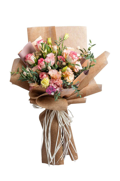 At Floristella, we guarantee that every bouquet will arrive fresh and on time. Your Pink Roses & Champagne Lisianthus arrangement will be delivered in perfect condition, spreading joy and beauty to every special moment.