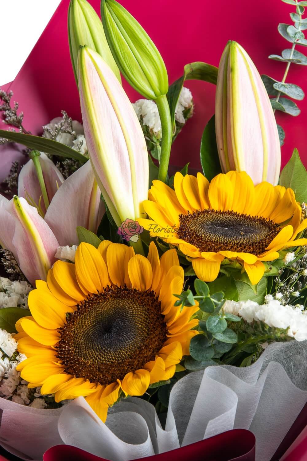 At Floristella, we guarantee that your Pink Lilies & Sunflowers bouquet will arrive fresh, on time, and in perfect condition, ready to brighten up any day.
