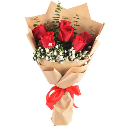Feel the love with the irresistible charms of both Gypsophilia (baby's breath) and Imported Red Roses arranged beautifully and tied with a bow.