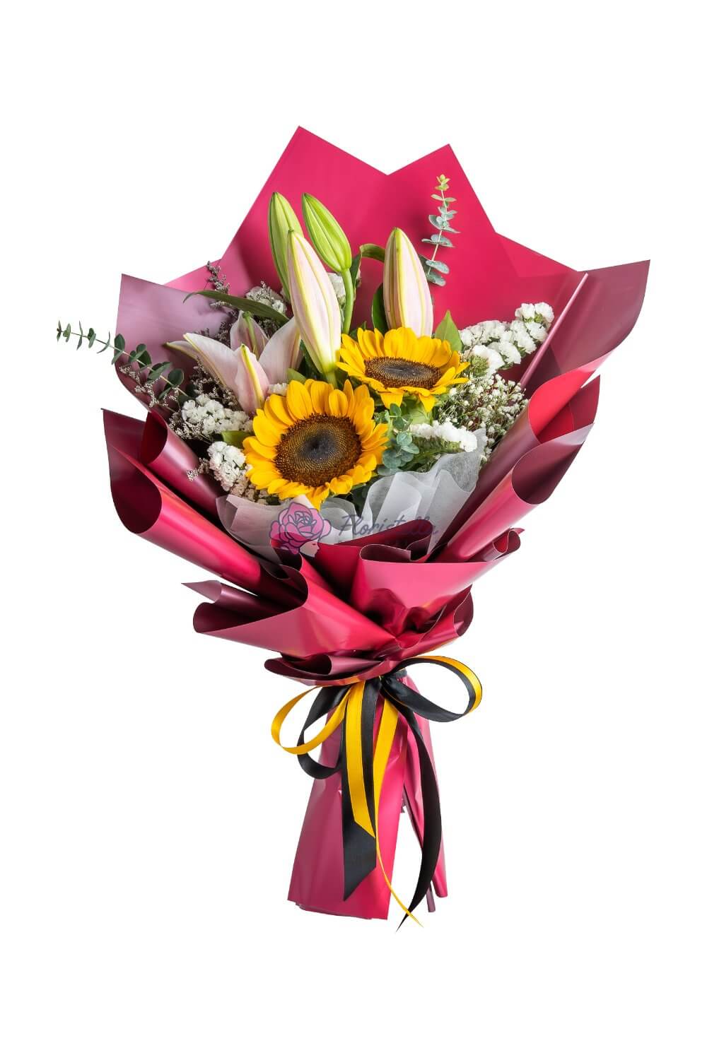 At Floristella, we guarantee that your Pink Lilies & Sunflowers bouquet will arrive fresh, on time, and in perfect condition, ready to brighten up any day.