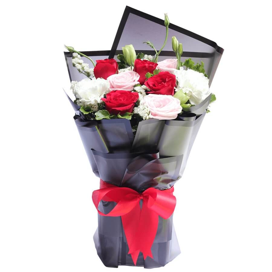 Red, white, and pink mixed together, styled in elegant black wrapper will make someone's wish come true.